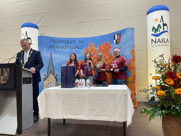 Am 07. Januar 2026 lud die Stadt Naila die örtlichen Vereine zum traditionellen Neujahrsempfang ein. Eine besondere Ehre wurde dabei unserer Indiaca-Damenmannschaft zuteil: Bürgermeister Frank Stumpf überreichte die Sport-Medaille der Stadt Naila für ihre sportlichen Leistungen im vergangenen Jahr (u.a. Gewinn des Indiaca-Bayernpokals).